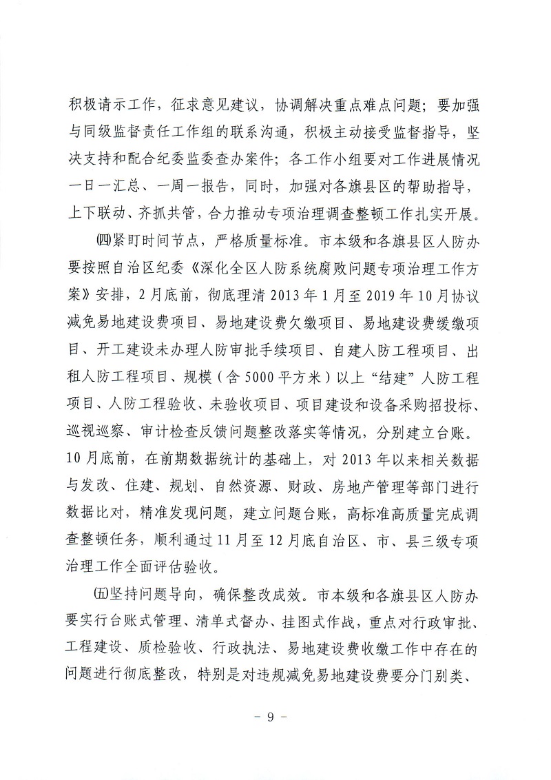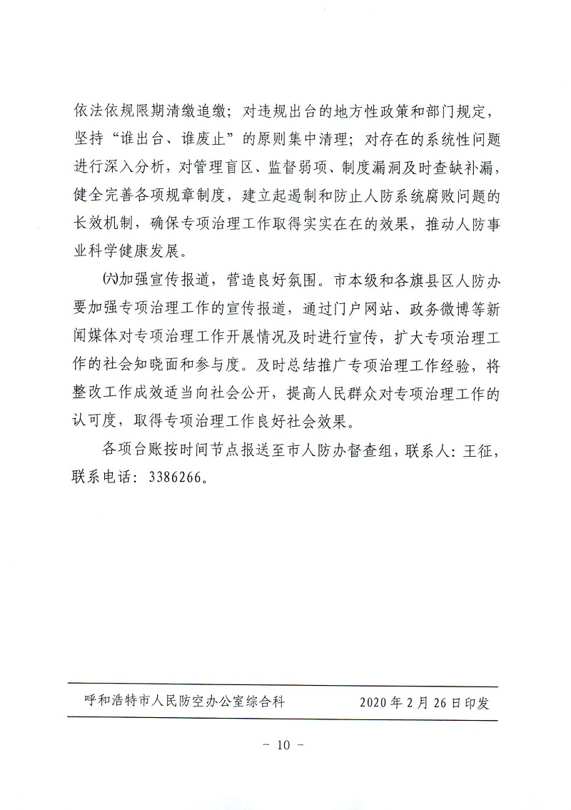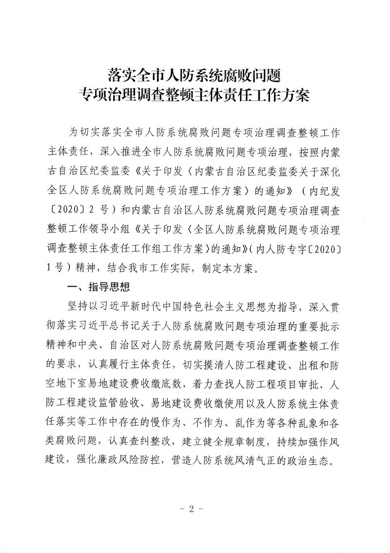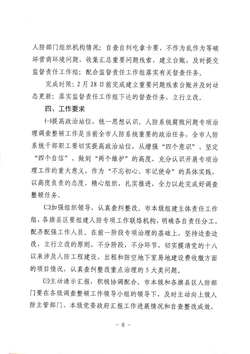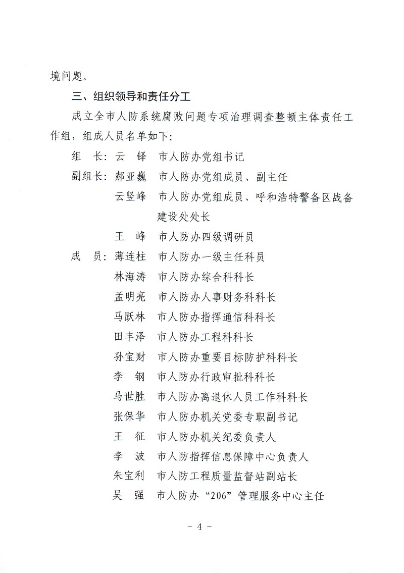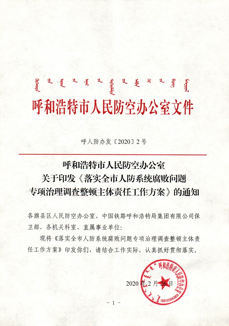 呼和浩特市人民防空办公室关于印发《落实全市人防系统腐败问题专项治理调查整顿主体责任工作方案》的通知