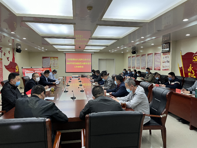 5月12日,呼和浩特市人民防空办公室召开2022年度党建暨党风廉政建设工作部署会。党组书记、主任云铎主持会议,市纪委监委派驻纪检监察组吕世忠同志到会指导,党组成员、副主任郝亚巍、弓克同志,四级调研员王峰同志,机关党委、纪委委员,各党支部书记、委员参加会议。